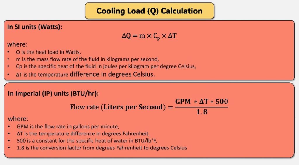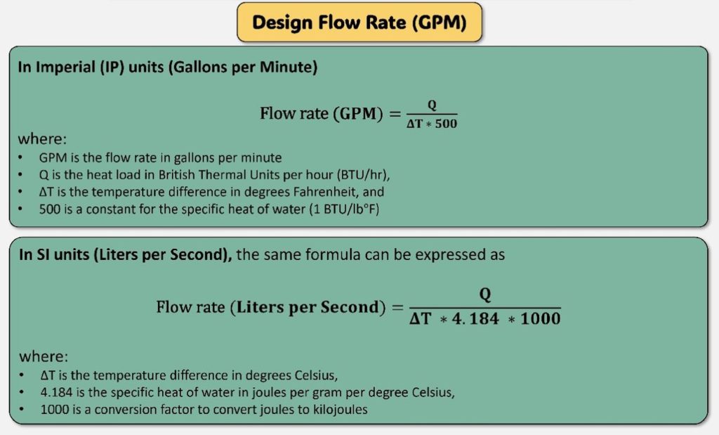 - سپس با در اختیار داشتن بار برودتی کل و در نظر گرفتن تعداد دستگاه های مد نظر نسبت به محاسبه جریان آب در گردش و بار برودتی واقعی چیلر اقدام می کنیم.