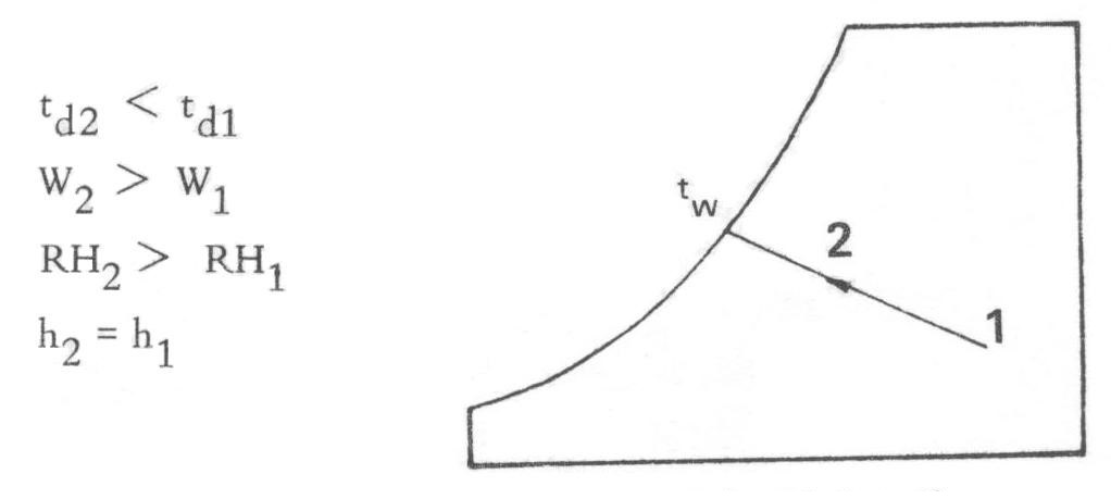 اين يك تحول آدياباتيك بوده و نمونه آن در كولرهاي آبي اتفاق ميافتد. آب اضافه شده به هوايي كه بسرعت در حال عبور است گرماي نهان تبخير خود را از هوا گرفته آنرا خنك ميكند. در طول اين تحول دماي مرطوب هوا ثابت باقي ميماند.
