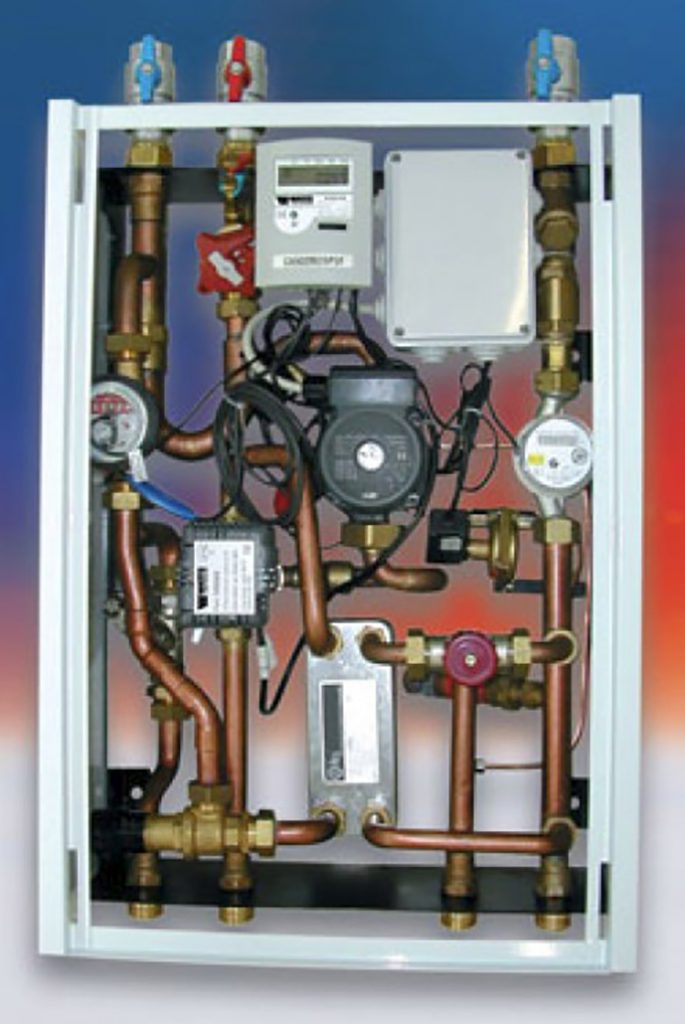 نمونه دستگاه که ضمن اندازه گيري مقدار آب مصرفي قادر به تغذيه سيستم گرمايش رادياتورها و توليد آبگرم مصرفي است. اندازه گيري انرژي حرارتي که جهت گرمايش و توليد آبگرم مصرفي براي واحد استفاده شده از ديگر ويژگي هاي اين دستگاه است. در اين دستگاه سيستم گرمايش با پمپ داخلي تحت فشار قرار دارد و افت فشارهاي داخلي واحد توسط پمپ دستگاه تأمين خواهد شد. (براي کويلهاي حرارتي)