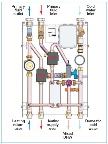 – بدليل توليد آبگرم بهداشتي در واحد گرمايش محلي (داخل هر واحد آپارتماني) اين دستگاه مانند آبگرمکن لحظه اي Tankless عمل مي کند بدين ترتيب رايزرهاي رفت و برگشت آبگرم بهداشتي، منابع کويلدار (يا دوجداره) توليد آبگرم و پمپ ها مرتبط با آنها حذف مي شوند.