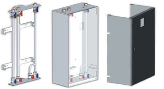 - مجموعه اتصالات لوله کشي ورودي (Inlet Connections) شامل يک اتصال دنده اي مخصوص ورودي آب سرد مصرفي، دو اتصال رفت و برگشت سيال اوليه گرمايش (Primary Heating Fluid) و در برخي مدل ها دو اتصال رفت و برگشت سيال اوليه سرمايش (Primary Cooling Fluid).